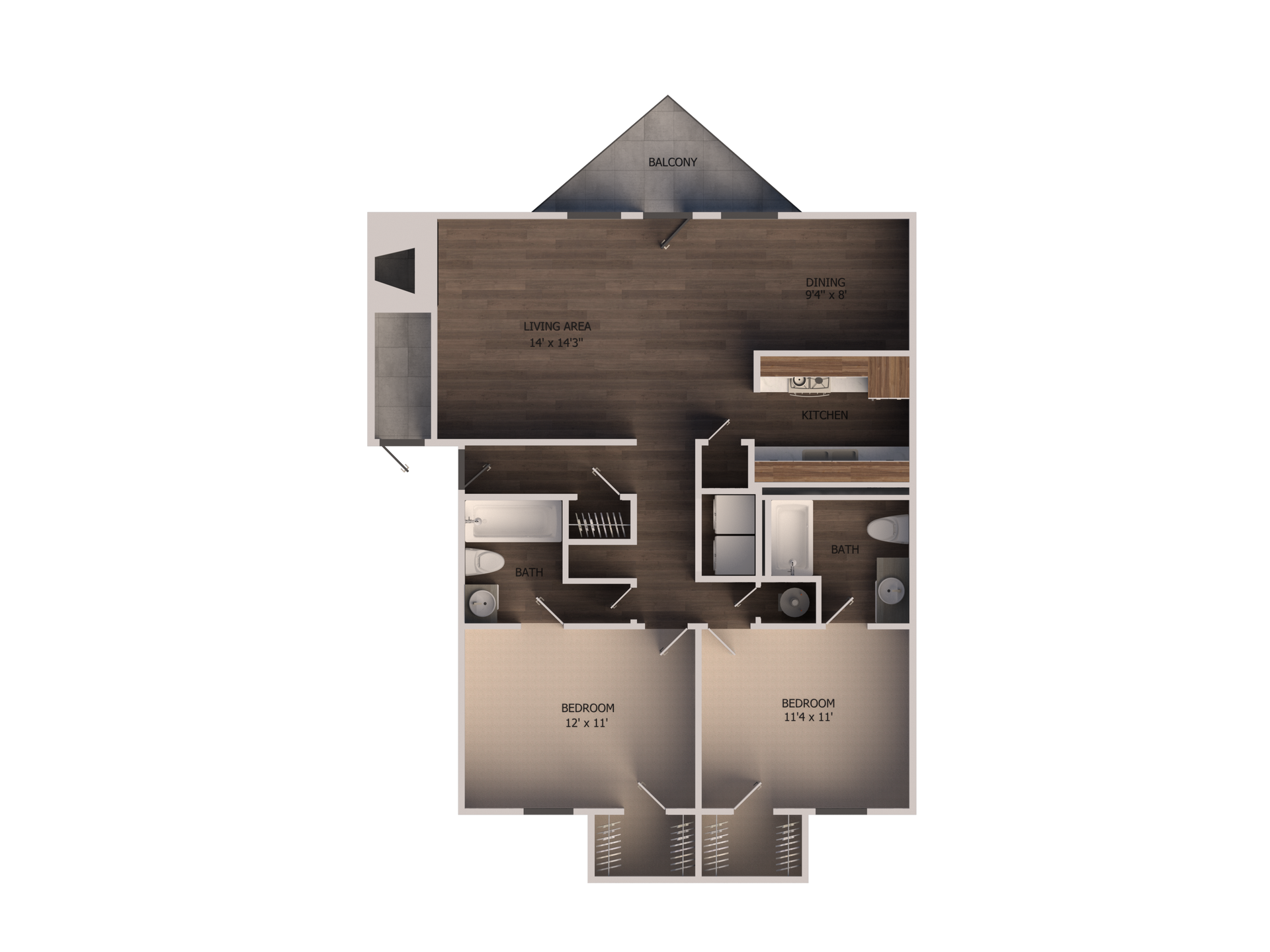 Arbour Apartments offers a spacious 2-bedroom 2-bathroom apartment at 1,065 sq ft. The unit includes refrigerator, range, dishwasher, and washer/dryer connections. We also offer onsite storage for every resident located next to the unit.
