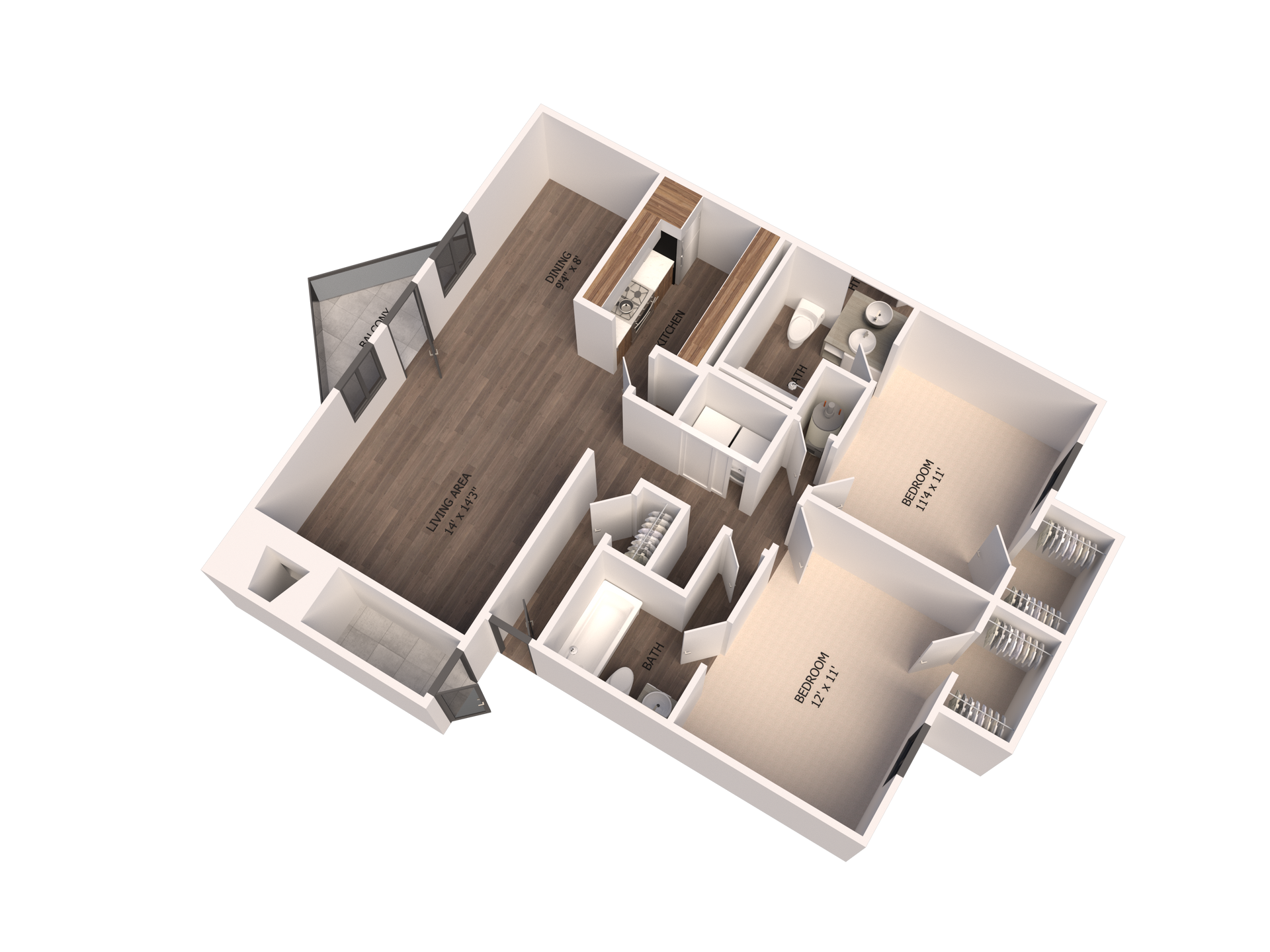 Arbour Apartments offers a spacious 2-bedroom 2-bathroom apartment at 1,065 sq ft. The unit includes refrigerator, range, dishwasher, and washer/dryer connections. We also offer onsite storage for every resident located next to the unit.